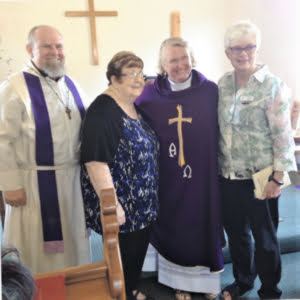From left to right are Reverend Greg Colby BNR, Evelyn Davies, Reverend Nicole Baldwin Mothers Union Chaplain and Denise Brown Mothers Union Diocesan President.